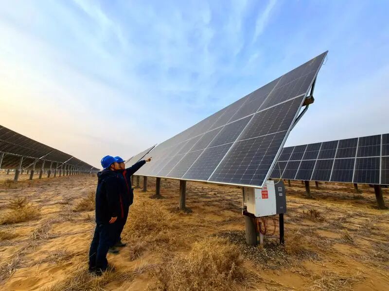 广袤的戈壁滩上,一台台风机巍然屹立,一片片光伏板在阳光下熠熠生辉。2024年8月,宁夏至湖南±800千伏特高压直流工程合闸送电,标志着我国首条以“沙戈荒”新能源为主的特高压通道正式投运。这项被称为“宁电入湘”的工程,构建起西电东送的“电力高速公路”,也成为中卫服务国家能源战略的关键一步。