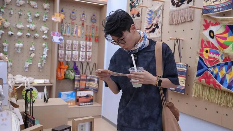 近日,四川游客徐东旭在中卫有礼城市品牌店挑选文创产品。